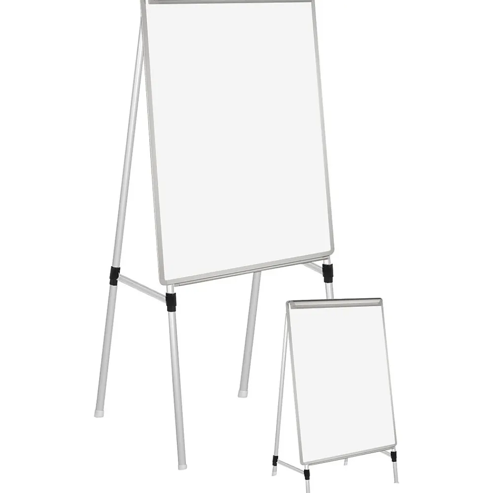 Ensure instructions, guidelines and other notes are highly visible with this presentation easel. The lightweight and foldable design is ideal for packing up and bringing on the go, while the durable four-leg construction offers enhanced sturdiness and support. This MasterVision Silver Easy Clean dry-erase presentation easel features telescoping legs, so you can easily use this display on the floor or a tabletop.