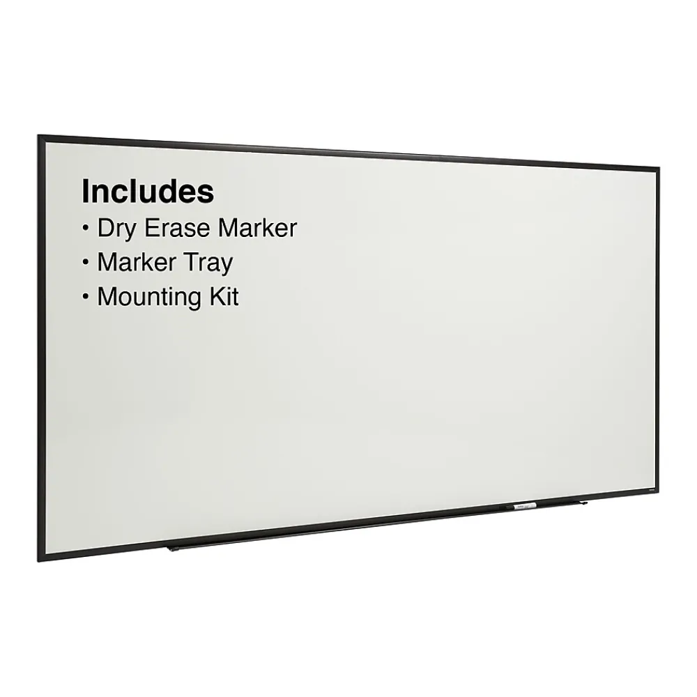 Prominently display important notes, memos or lists on your wall with this melamine whiteboard. A black aluminum frame adds a sleek, modern look, while the smooth melamine surface works with dry-erase markers and wipes clean after each use. This dry-erase board features an integrated storage tray, providing a convenient place to stash markers and erasers.