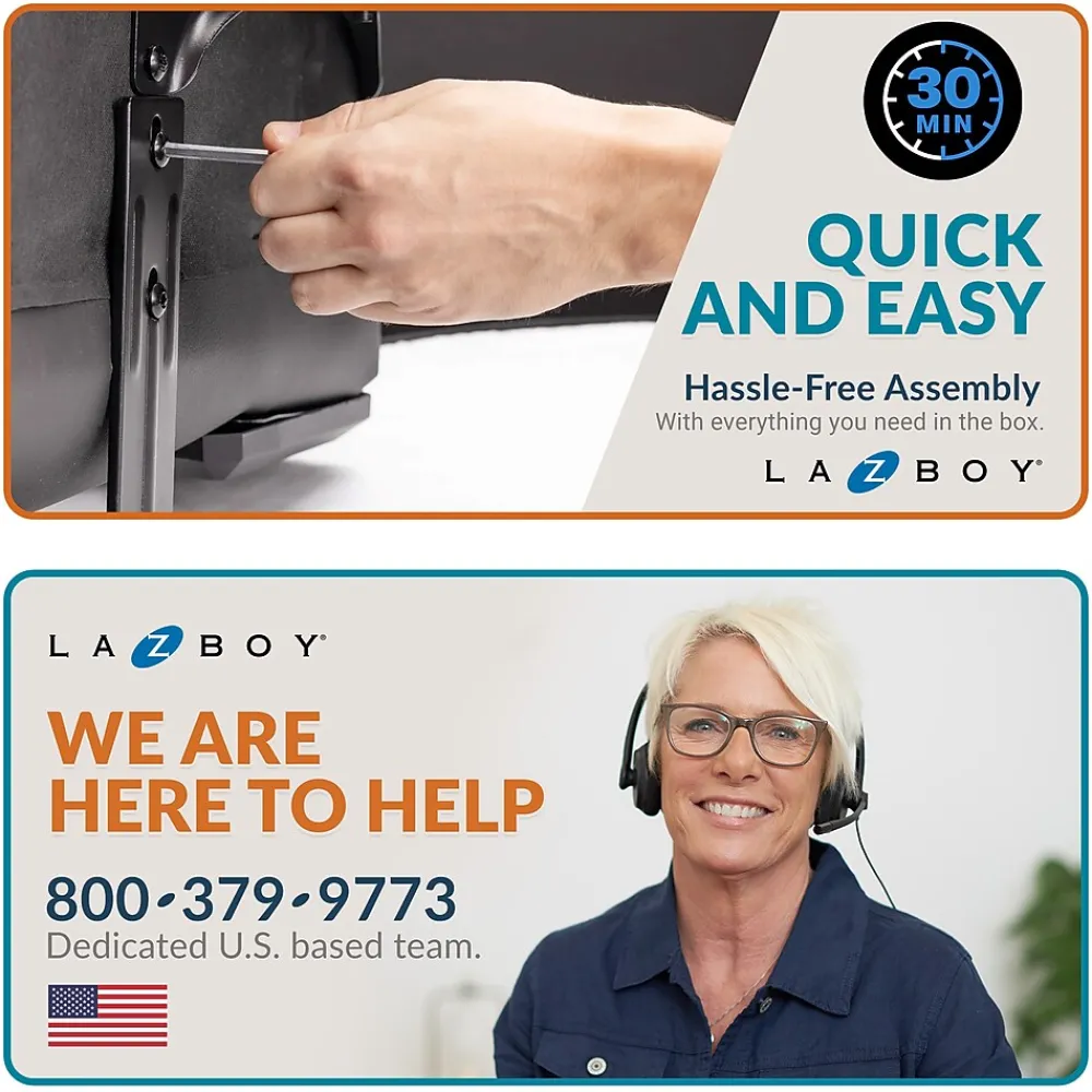This La-Z-Boy Aberdeen computer and desk chair comes standard with the ComfortCore zoned technology for optimal lasting comfort. An advanced layering system is designed to offer deliberate, unique, and zone-based support. The chair has an extra-padded back design that will fit into any office area.