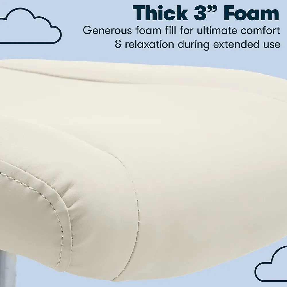 - Cream color bonded leather seat with breathable mesh back for comfort