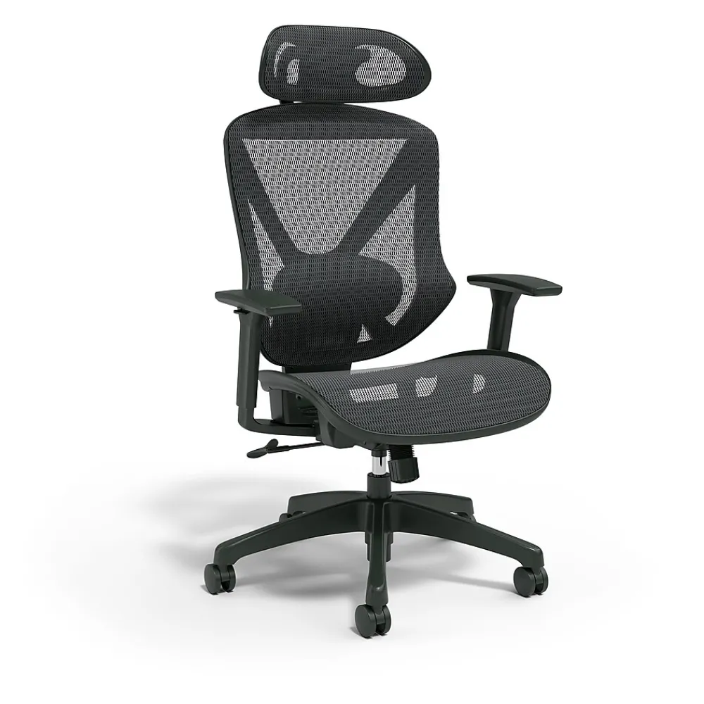 Upgrade your workspace with the Staples Dexley Mesh Task Chair, designed for optimal comfort and functionality. Tailored to your body, its adjustable seat height and armrests ensure personalized support, while the adjustable lumbar support promotes proper posture. The synchro-tilt mechanism, upright tilt lock, and tension knob offer control over reclining resistance for focused productivity. With a stable five-star base and smooth casters, maneuvering around the office is effortless. Plus, its breathable mesh construction keeps you cool during long hours. Experience superior ergonomics with features like adjustable headrest, lumbar support, tilt tension, and tilt lock, enhancing your workspace comfort and efficiency. Get one of the best seats in the house for discerning professionals who demand excellence they can count on for years to come.