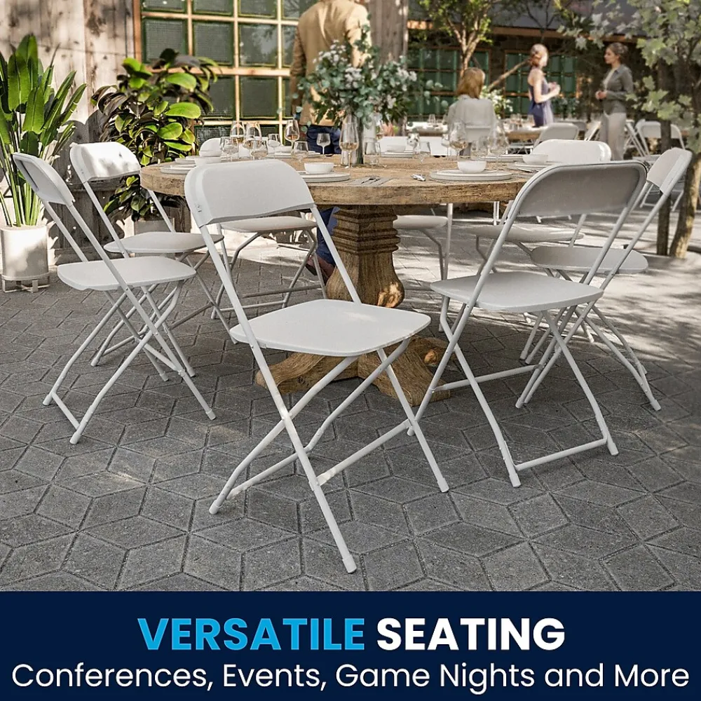 Flash Furniture HERCULES™ Series folding chair of sold as 52 per pack has double rails for adding extra strength. Steel frame with premium white powder finish suits perfectly for all events and comes with floor caps to reduce noise.