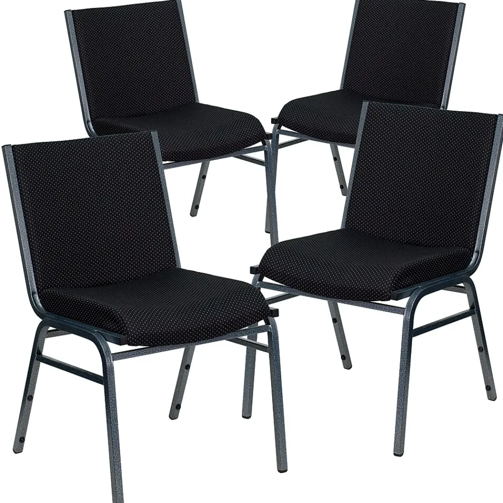 When you need comfortable seating, these padded stack chairs offer versatility to be used in a myriad of environments. Utilize this multipurpose side chair in the church, office, classroom, training room or in the home. This stacking side chair can create uniform, row seating with the included ganging bracket. Add flexible reception chairs in your lobby to keep guests comfortable as they await to be seen or use as a side office chair for meetings. Built for durability, the heavy duty frame with bumper guards prevent the finish on the frame from being scratched when stacked. To make transporting even easier, equip yourself with the appropriate sized stack chair dolly. So when in need of temporary or permanent seating this multi-purpose stack chair is sure to meet the needs for any venue.
