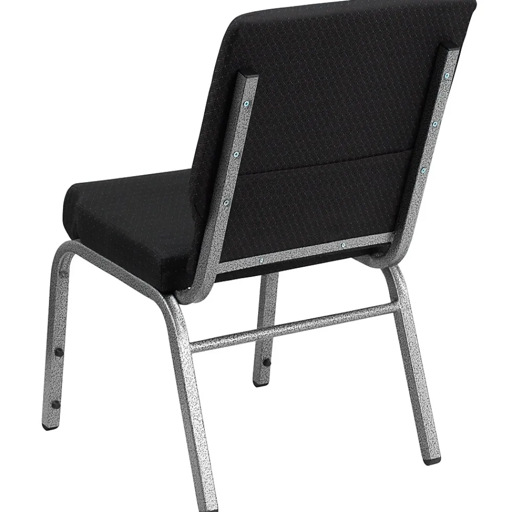 This beautiful, supremely comfortable padded chair will ensure your guests have an enjoyable experience at your next church service or all day seminar. Unlike pew seating, these chairs let you create different seating configurations making them an ideal seating solution for any venue. The upholstered stack chair with seat are generously padded and covered in durable fabric upholstery while the seat has a waterfall edge to reduce pressure on your legs. A convenient book pouch on the back of the chair keeps bibles, hymnals or training manuals readily available. Built-in ganging brackets connect your chairs for nice, straight rows. Its sturdy 16 gauge steel, silver vein frame, with gracefully angled legs, has been tested to hold up to 800 pounds and plastic rocker glides protect your floors. This chair stackable chair is an excellent choice for event venues, hotel lobbies, banquet halls, conference facilities and worship centers.