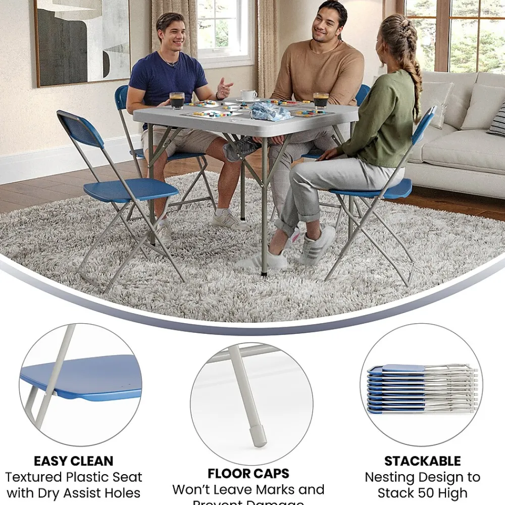 | Folding & Stacking Chair Type The primary color of the product | Blue |