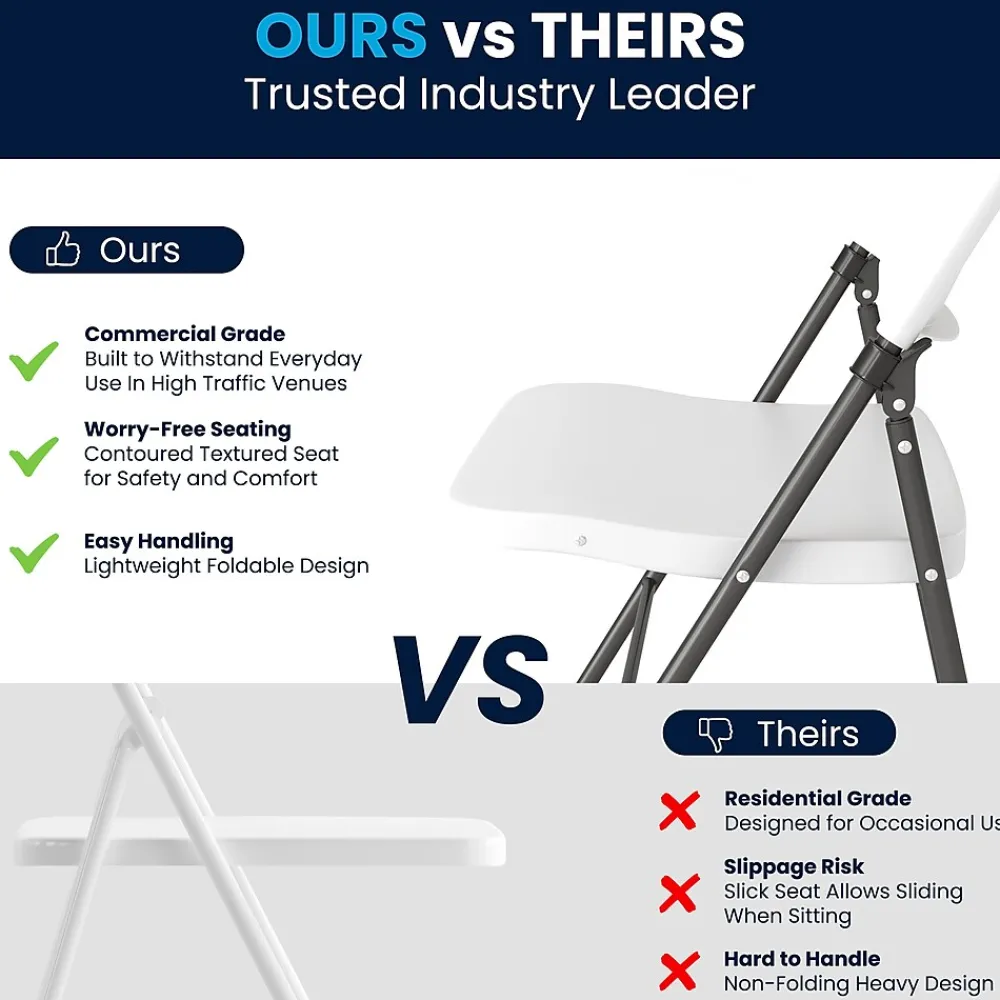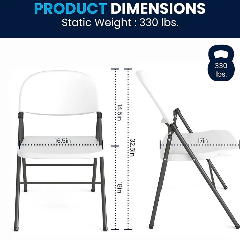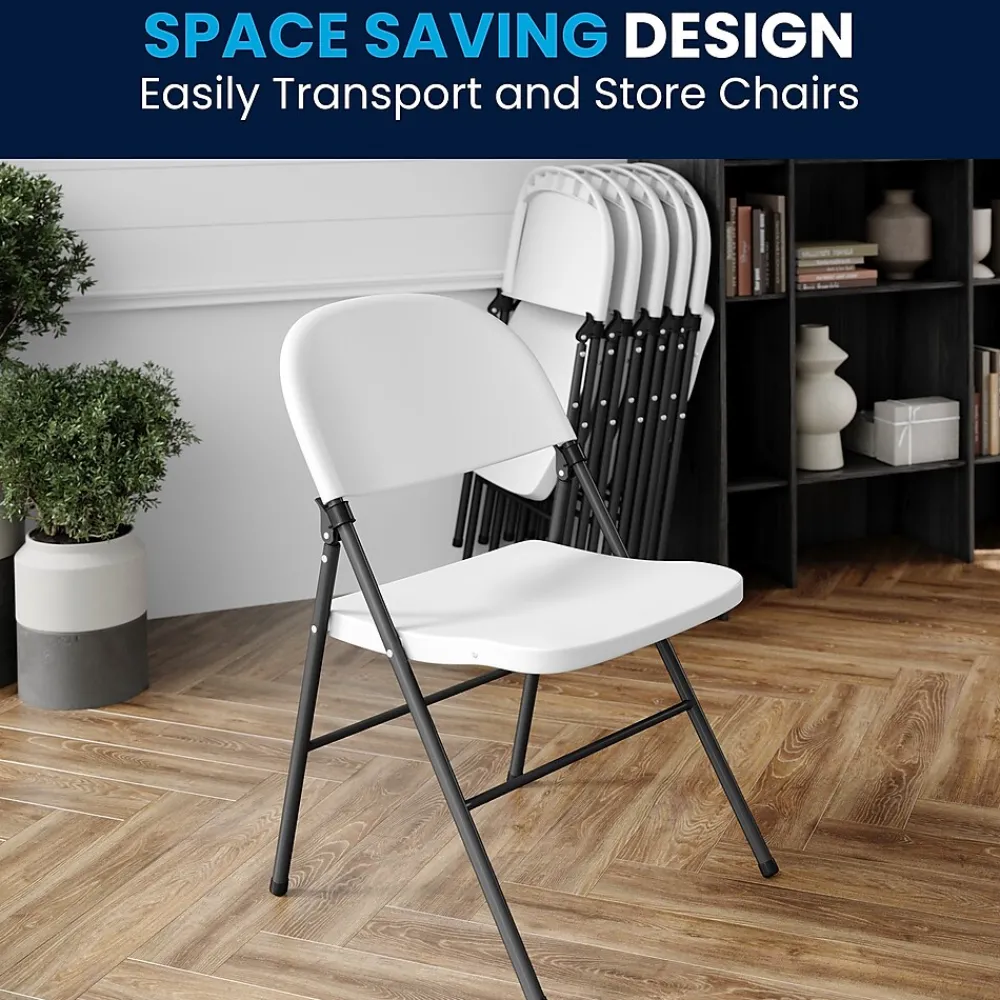 Feel free to host the holidays this year or plan a perfect event or gathering with this Flash Furniture HERCULES Series granite white plastic folding chair with charcoal frame. A practical choice for party rental companies, event venues, or for regular use in your home, this folding chair with steel frames is built to last. A molded seat provides comfort to guests while the heavy-duty frame supports up to 330 lbs. The textured seat ensures safe and comfortable seating. After use, place the chairs from the two-pack on top of each other or in a row. You’ll always have extra seating on hand for guests for a game night, party, and Thanksgiving or Christmas dinner. The plastic chair offers a versatile seating solution while being easy to maintain and is designed for portability.
