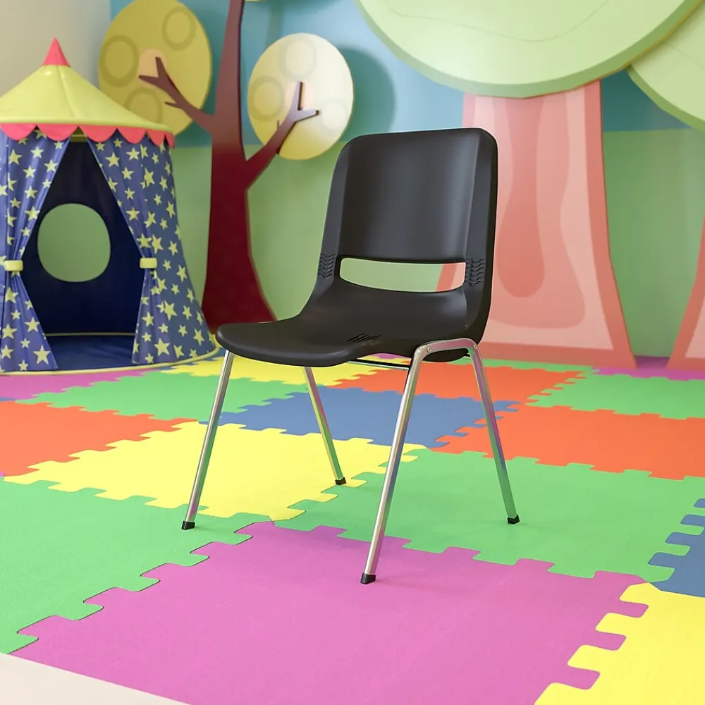 Optimize student’s comfort with an ergonomically contoured seat shell student chair with waterfall seat edge. Having comfortable seating in the classroom help students pay more attention to their teacher when not having to move around due to discomfort. The one-piece molded seat shell has a vented back to provide airflow not found on solid back classroom chairs. With a 17.5″ seat height you’ll cater to high school and adult education centers. These school stack chairs are built to last with a dual braced frame that can hold up to 880 pounds. School maintenance workers can appreciate student chairs that can stack for floor upkeep, these student desk chairs stack up to 20 chairs high. We consider this student stack chair to be the premier stack chair – essential for every school and classroom setting.