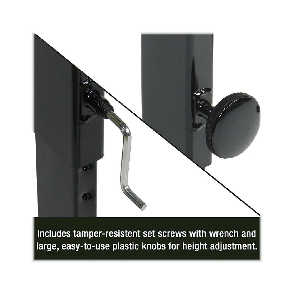 - Comes with two large, easy-to-use height-adjustment knobs, for fast height changes, and a screw set for maximum tamper resistance