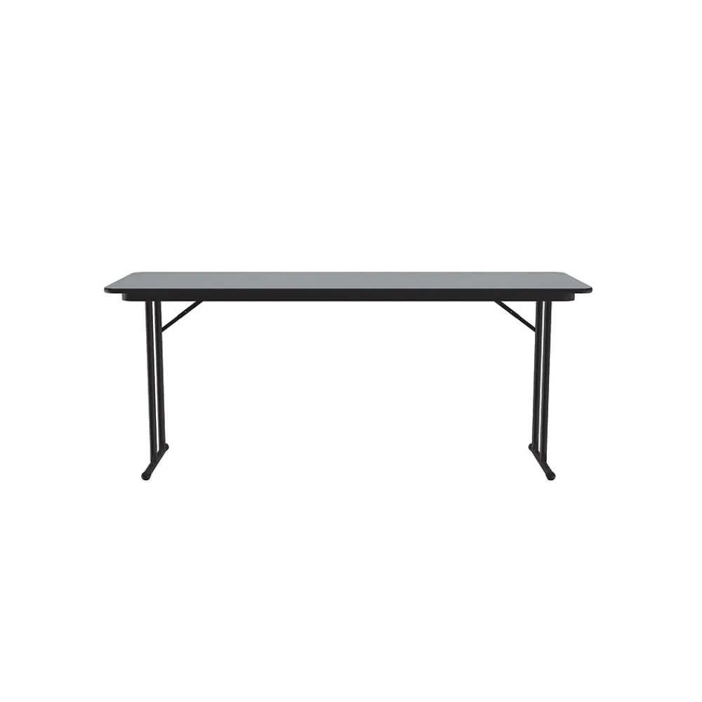 This offset leg folding table by Correll is constructed with the heaviest use in mind. Great for heavy-duty use in schools, universities, offices, hotels, and conference areas. The table’s thermally fused laminate top is water-, stain-, and dent-resistant. Folds for portability and storage space. Features a knife-lock mechanism attached to the back leg, making underneath the table completely open, and leaving nothing to interfere with the user’s legroom. Made in the USA.