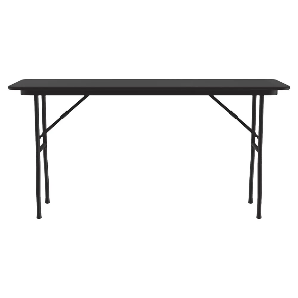 The Correll folding table is durable for heavy-duty home, office, school, church, food service, and commercial use. Its thermal-fused laminate top is water-, stain-, and dent-resistant. The table folds for portability and storage space.