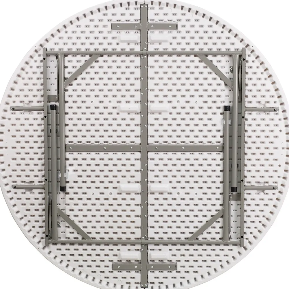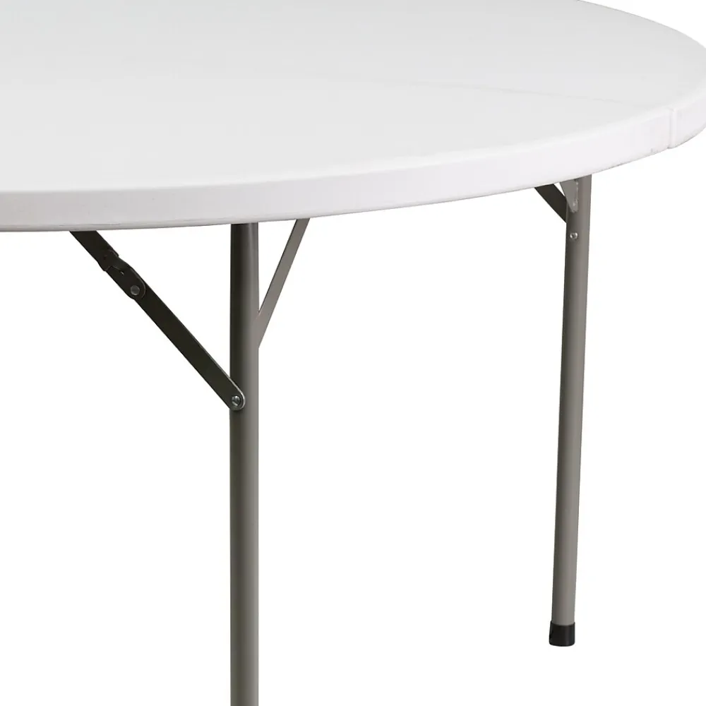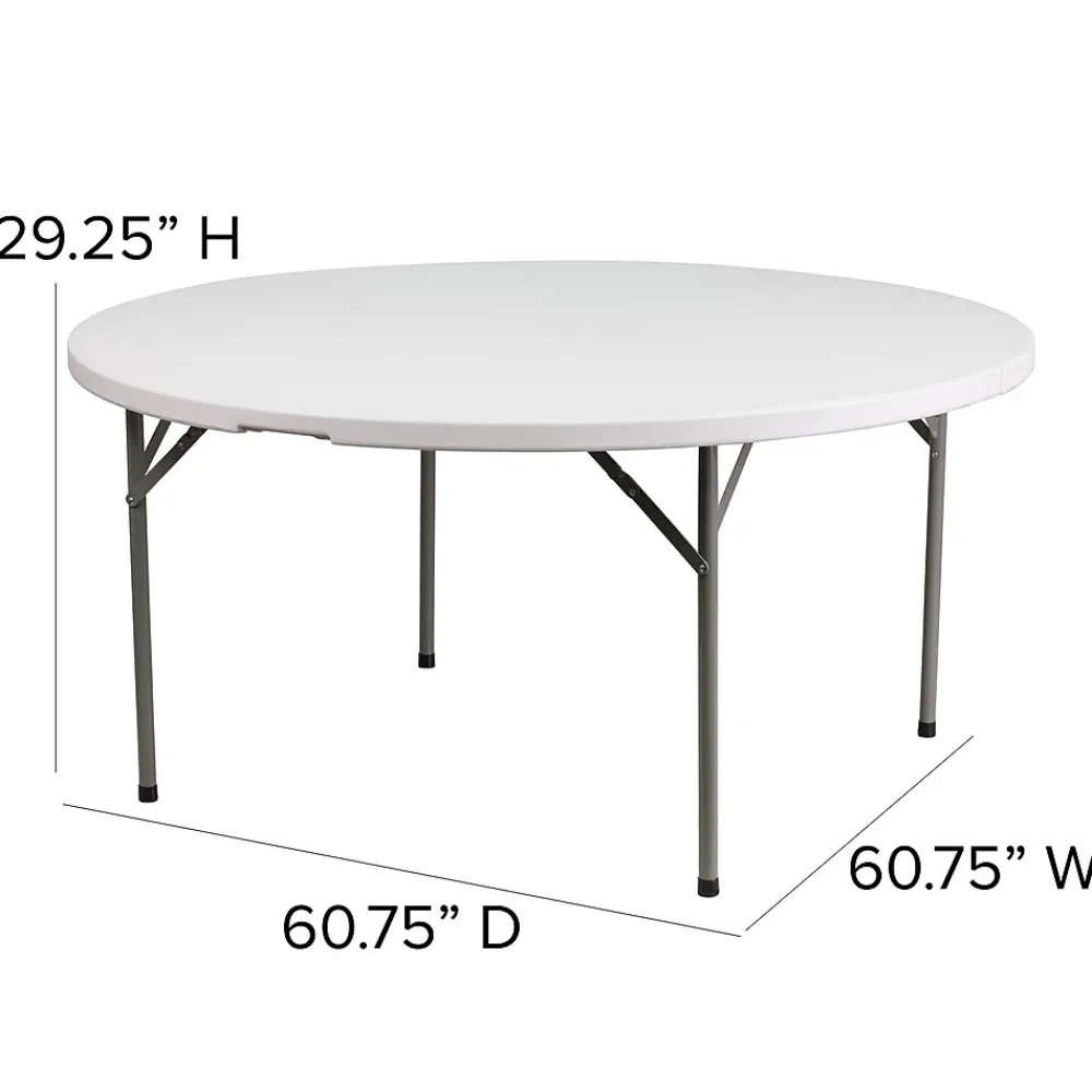 Ensure you have enough surface space for any function and take the stress out of hosting your next gathering. The round dining folding table is a great option for special event planners, catering companies and banquet facilities. This durable, easy to clean table is commercial rated for use in banquet halls, convention centers and at trade shows. Use during game night, dress it up for holiday parties, and coordinate crafts night. The thick, granite white tabletop is 60″ in diameter, 1.75″ thick, and will comfortably seat up to 8 adults. Its waterproof, impact and stain resistant top have a 551 pound static load capacity. Attractive gray powder coated legs lock securely in place while in use and non-marring floor caps protect your floor by sliding smoothly when you need to move the table. Designed for both indoor and outdoor use, store table indoors and protect the frame from extreme moisture. The 60″ Round Granite White Plastic Folding Table is a convenient option for your next home, school or business event.