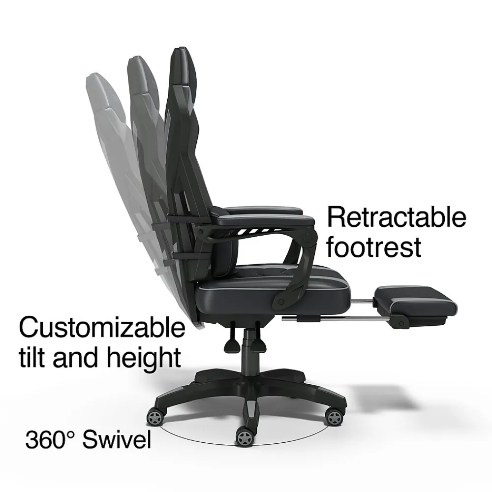 Dominate the competition in your Vomax gaming chair. This chair provides maximum comfort and integrates a lounging experience into long hours of gaming with a retractable footrest, 135 degree recline, padded headrest and lumbar support pillow. Customize your seating position with seat height adjustment and tilt lock. With advanced features that can easily be fine-tuned to your preferences, you’ll soon be ready to take on your next challenge.
