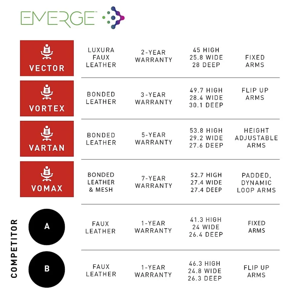 - Seat Dimensions: 18.5″-22.2″ H x 20.4″ W x 18.5″D
