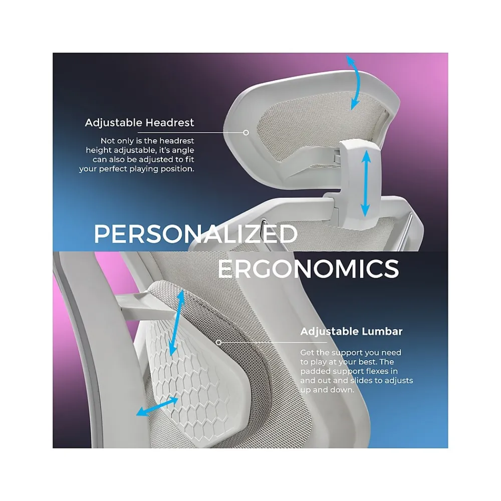 The Lenovo Legion mesh gaming chair is one of the most advanced gaming and office chairs in the market today. Tested and proven to provide maximum comfort during extended periods of use. Perfect for those who want to game or work in style, the chair has an adjustable headrest, lumbar support, and 4D arms that can all be fully customized to fit you like a glove. The ergonomic side seat controls let you fine-tune every little detail, while the durable base and seat construction make it tough enough to stand up to even the most intense gaming sessions, all while supporting up to 275 lbs. The 360-degree dual-wheel swivel casters effortlessly glide and swivel. Best of all, the breathable mesh fabric keeps you cool and comfortable even when things start to heat up.