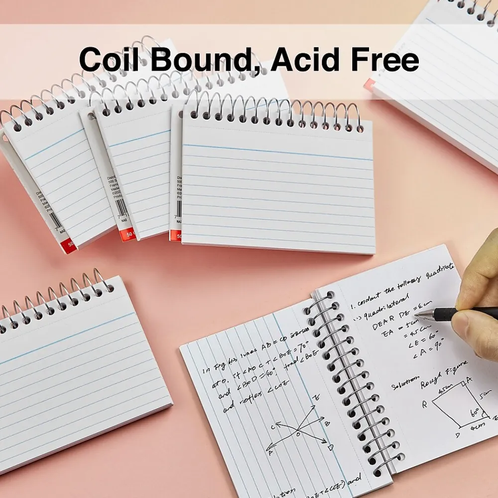 Flip through notes easily with these line ruled spiral-bound index cards. These index cards feature perforations across the top of each card for effortless removal. The printed lines on these Staples Business Essentials 3 x 5-inch index cards feature blank backs for sketches or abstract ideas.