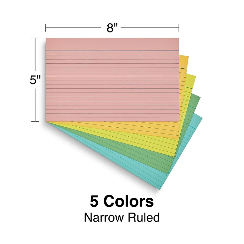 Organize important information with these line-rule index cards, which come in an array of pastel hues. The large size provides ample space for lists of notes, and a lined format keeps writing neatly legible. These Staples Business Essentials 5 x 8-inch assorted pastel index cards come in a 300-count pack, providing an abundant supply for creating flash cards, meeting notes or quick reference guides.