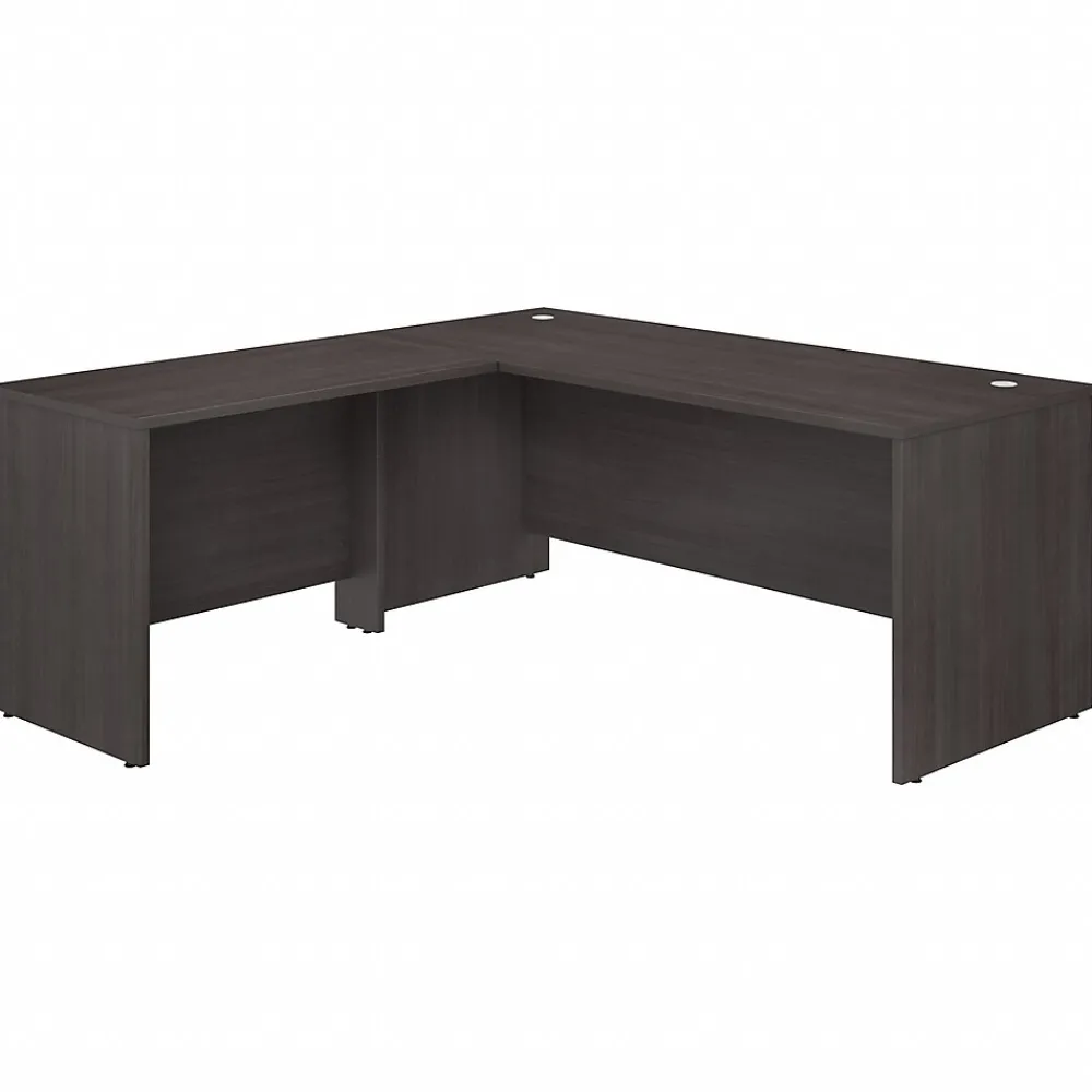 Highlighted by its contemporary style and commercial-quality design, the Bush Business Furniture Studio C 72″W L-shaped desk with 42″W return presents a perfect workspace for the modern professional. Take advantage of the spacious surface to spread out with a computer, paperwork, and more as you tackle your next big project. The L-shaped desktop easily accommodates multiple monitors and other materials with a 200 lb. weight capacity and built-in wire management grommets. Position the L-desk in a corner to save space in a small private office, or make use of the finished back to face outward in an open-plan environment. The return can be installed on either side of the main work surface for a right- or left-handed configuration. This corner desk is tested to meet ANSI/BIFMA standards for safety and performance and is backed by a 10-year warranty. American-made with US and imported parts.