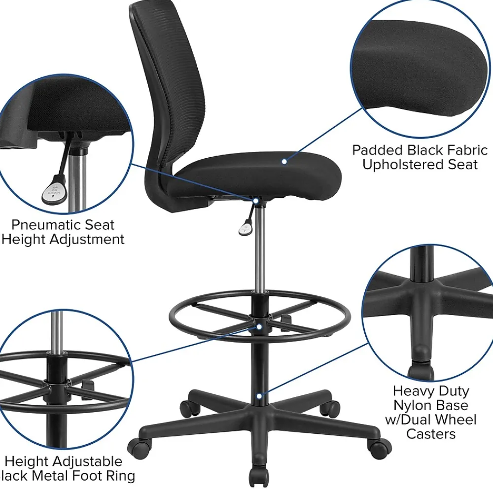 ![Office Chairs*Flash Furniture Ergonomic Mid-Back Mesh Drafting Chair with Black Fabric Seat and Adjustable Foot Ring [GO-2100-GG]](https://www.efficiencyfurniture.com/modeqaf/product_images/ergonomic_midback_mesh_dr_SKU2607258_8.webp)