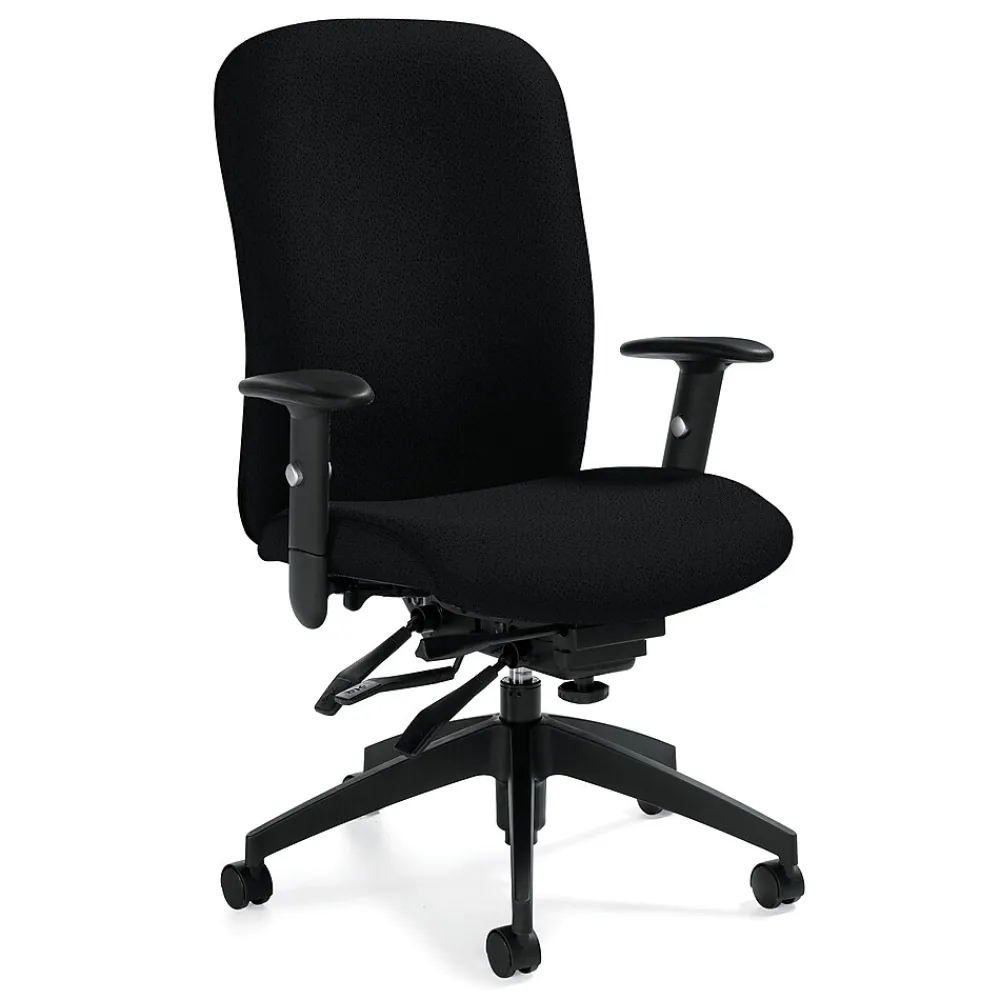 This high-back executive chair offers maximum support along the back to ensure proper posture, and the soft cushions make it suitable for meeting rooms and guest offices. The built-in lumbar support accommodates the natural curve of the spine to help alleviate back pain, and the adjustable arms of this Global Truform red executive chair provide a place to rest the forearms for greater comfort during typing.