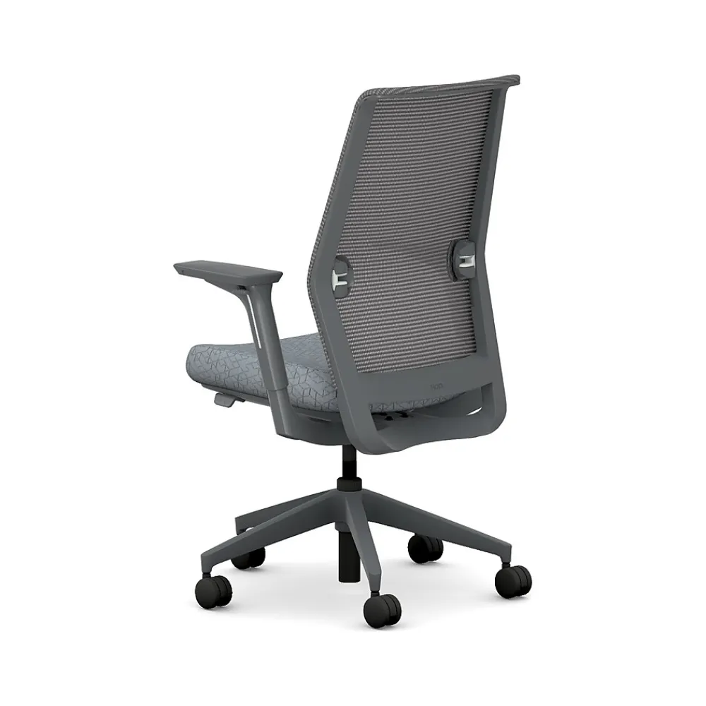 - Four-way stretch mesh back in charcoal gray, Apex basalt gray fabric seat, and charcoal gray frame