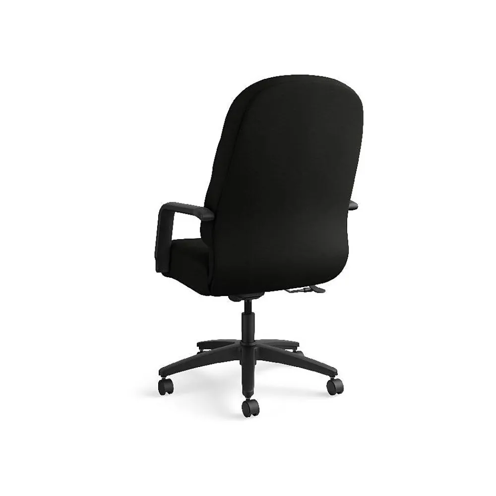 Create a relaxing atmosphere in your office with this HON Pillow-Soft executive high-back chair. The layered seat back features foam and polyester fiberfill, offering comfort the whole day through. Made with a memory foam seat and fixed loop arms for an enjoyable seating experience. With simple controls, this chair lets you adjust the height and tilt, so you can find the perfect configuration for your personal needs. A high-strength resin five-star base supports the durable rolling casters, making it easy to wheel this HON Pillow-Soft executive high-back chair anywhere you need it.