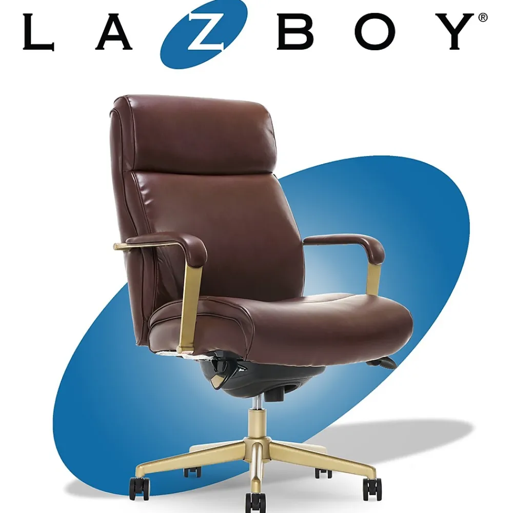 Fitting with your modern lifestyle, the Melrose executive office chair showcases clean lines, contemporary color, and overall sensibility. Smooth bonded leather offers sleek seating while maintaining a high-end look. Set on a copper-finished wheeled base, this office chair moves with ease from a day of work at your desk, to your living room for a night of gaming. The ergonomic design, full cushion foam, and adjustable lumbar support keep you comfortable and energized through every moment. Ergonomic and adjustable, this La-Z-Boy office chair allows you to control the height and tilt to suit your sit positioning and give you an optimized body alignment. La-Z-Boy office chairs are designed to put your comfort first with quality that’s built to last, so your work day is always engaged and productive.