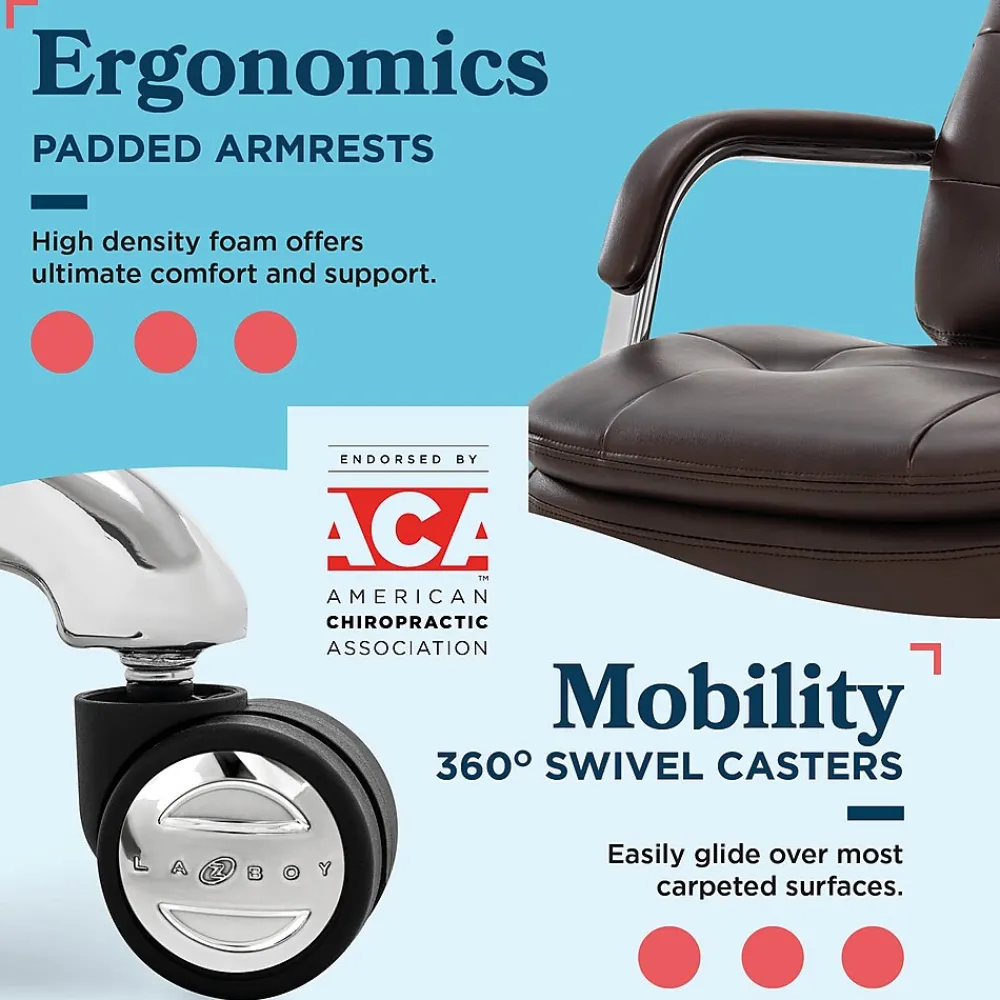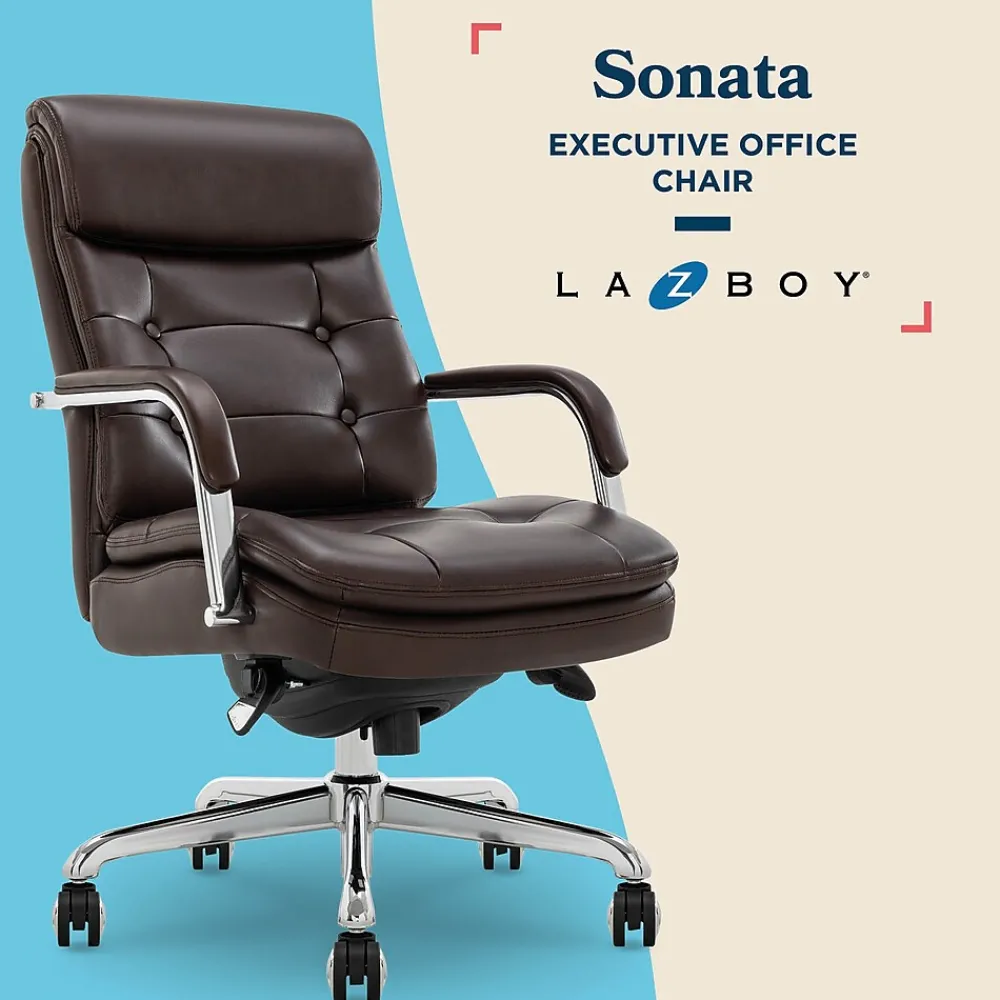 La-Z-Boy offers quality furniture for every room, from stylish sofas and loveseats to supportive recliners and office chairs. For over 95 years, we’ve been bringing comfort and lasting quality to homes, all crafted with a dedication to excellence. We’re passionate about creating furniture that fits your life, with endless styles to match your home. Imagine the La-Z-Boy Sonata Executive Chair as the centerpiece of your office. Its sleek design blends modern sophistication with luxurious comfort. The Sonata embraces minimalist chic with gentle curves accented by timeless button-tufting on both the seat and backrest. The double-stitching adds a tailored finish while the industrial-inspired arms and your choice of polished gold, graphite, or chrome base elevates the entire look. This stunning mid-back chair prioritizes your well-being as much as its aesthetics. Subtle contours in the backrest adapt to your posture, while soft armrests provide ergonomic support for your shoulders. The double-layer, semi-plush seat cushion is filled with high-density foam for comfort throughout the workday. Wrapped in a durable bonded leather that’s easy to care and clean, the Sonata comes in 5 classic colors – White, Gray, Cognac, Black, and Dark Brown – to find the perfect match for your decor. The sturdy metal base lets you swivel around with ease, and the matching dual casters handle even the deepest office rug and carpet. Adjusting the height and tilt is a breeze with the handy seat-side accent fingertip controls to find your ideal seating position. Upgrade your workspace, home office, or the corner office with a chair that mixes effortless style and workday comfort to look as good as it feels to sit in. La-Z-Boy is a trademark of La-Z-Boy Incorporated and is used under license to Living Style (Singapore) Pte. Limited.