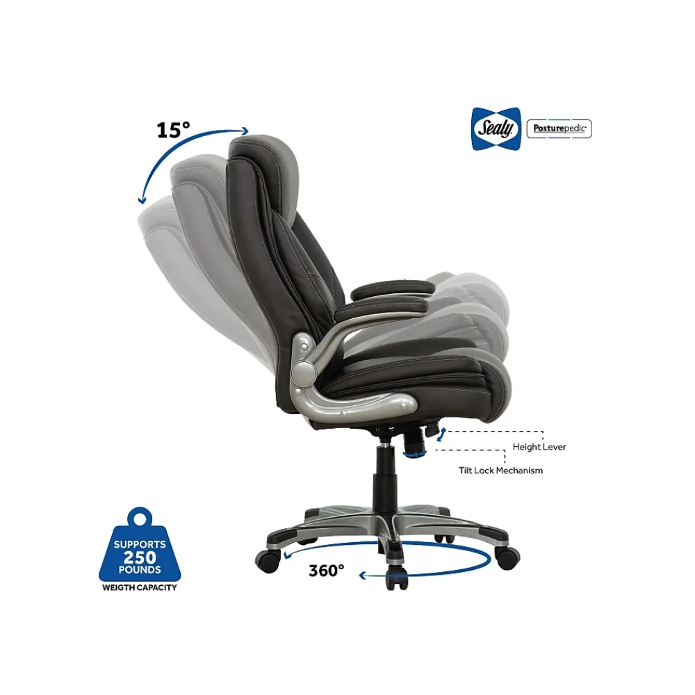Experience the embodiment of sophistication with the Axel Office Chair. Its grey bonded leather upholstery whispers elegance, while its sturdy construction ensures reliability. Sink into luxurious comfort with memory foam and pocket coil seating, supporting you through your busiest days. Glide effortlessly through tasks with the full 360° swivel, feeling empowered by the chair’s smooth mobility. Adjust the height and tilt to your liking, finding your perfect ergonomic haven. Crafted by Sealy, it’s your trusted companion, promising productivity and comfort for the hardworking professional.