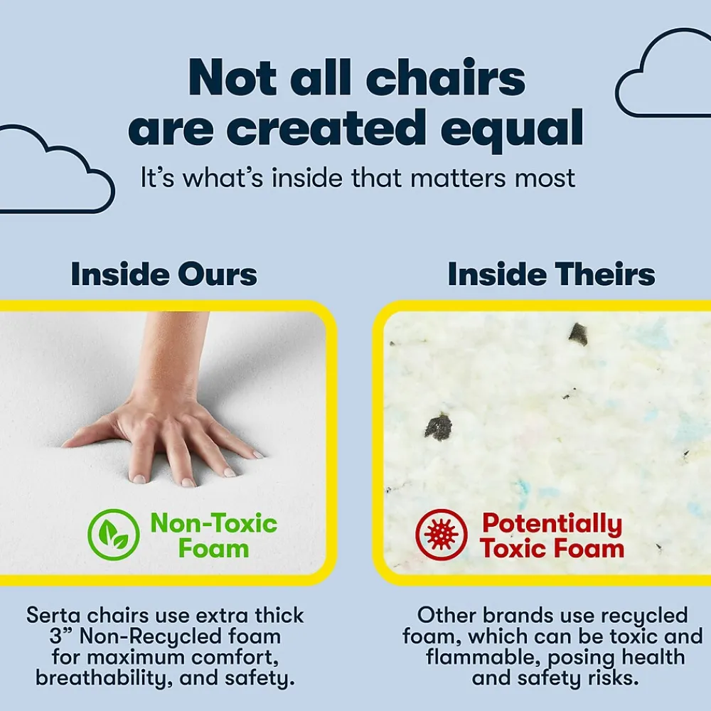 The Serta Big & Tall executive office chair brings the legacy of quality, comfort, and style to your office. Specialized premium foam makes up the smart layers that are placed over individual pocketed ComfortCoils, offering pressure-relieving comfort and optimized support for an unrivaled seating experience. The deep, layered body pillows on this leather office chair wrap you in softness, creating a plush feel that takes you comfortably through your day. Designed to help alleviate strain and discomfort, this ergonomic office chair has an elevated headrest to support your neck. This big and tall office chair accommodates up to 350 lbs. and has a generous, roomy seating area, so you can stay focused and productive without feeling constricted. Commercial-grade components like an extra-large steel plate and thicker plywood ensure this heavy-duty office chair stands up to heavy use. A great addition to your executive workspace, this Serta office chair is finished in a supple bonded leather for a commanding style that highlights success.