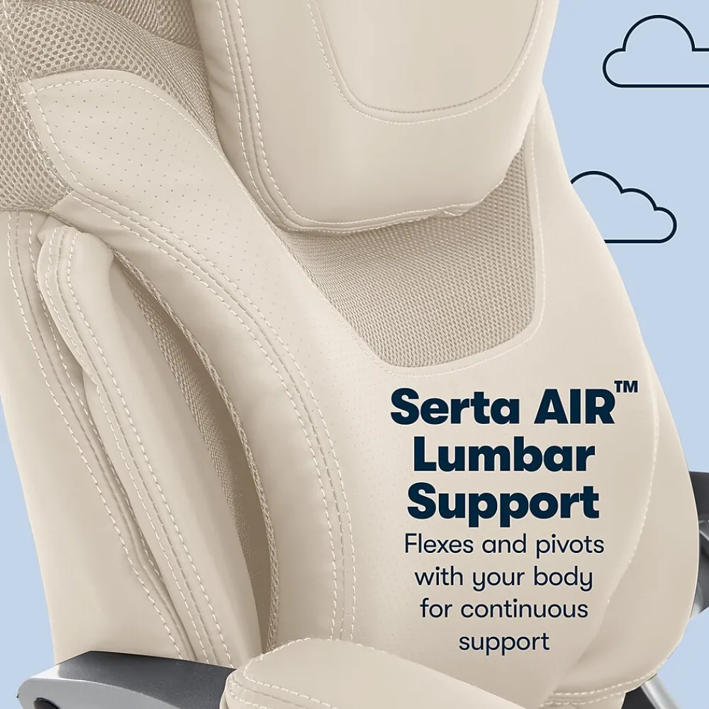 Designed for those that sit for long periods of time, the Serta Works executive office chair with AIR technology is rich with ergonomic enhancements to maximize comfort and wellness, so you can be more productive. The chair’s lumbar with kinetic AIR Technology swivels and moves with you for dynamic support that actually helps improve your posture. The sloping, waterfall seat cushion promotes circulation to decrease uncomfortable leg fatigue, and the pneumatic height and tilt adjustments can be customized with the right fit for you. But this chair is no slouch. Its sleek design gives any workstation the executive treatment.