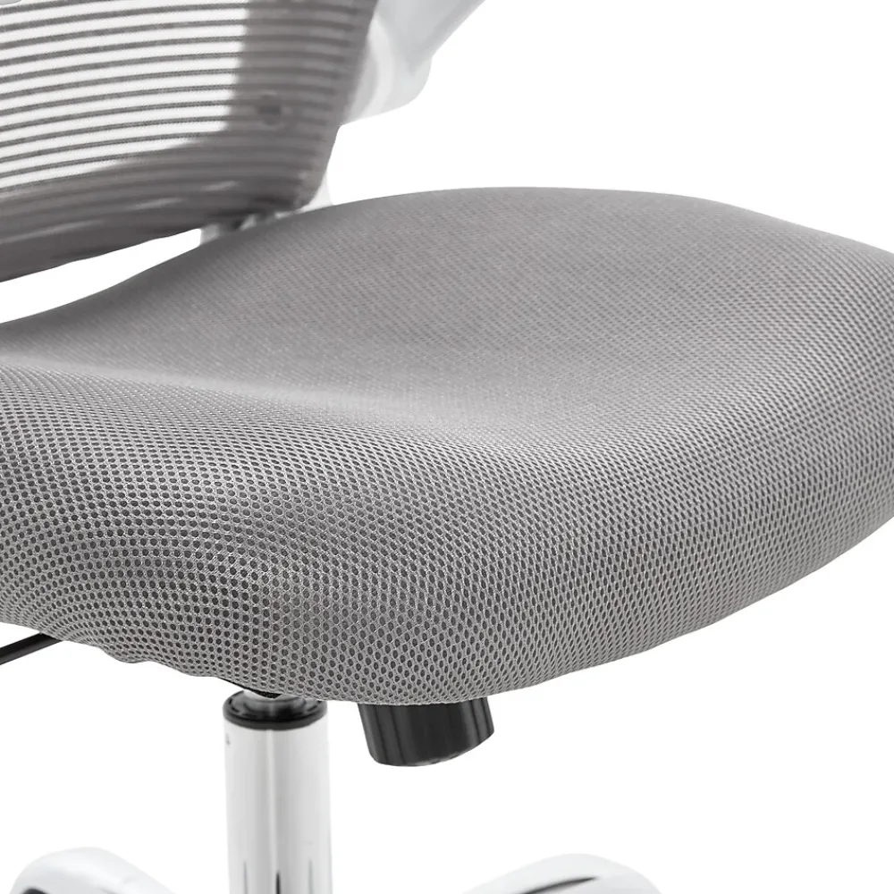 - Gray polyester seat with breathable mesh back for comfort