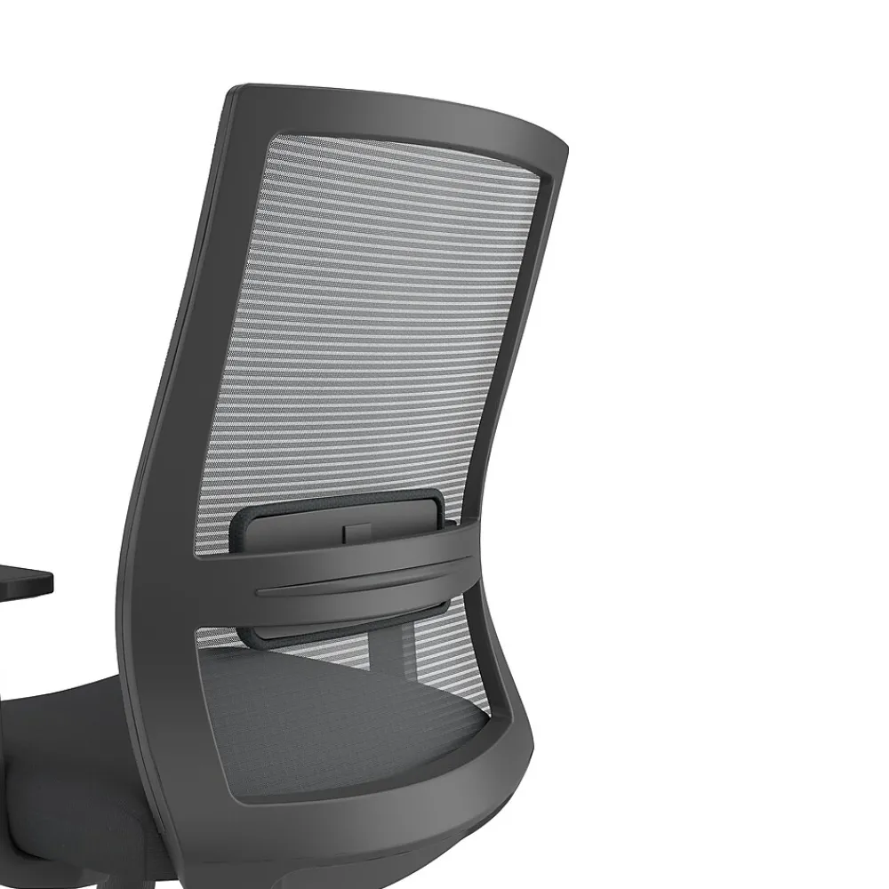 Elevate your workspace with this fabric task chair, delivering exceptional value and functionality. The built-in lumbar support takes its cue from the natural curve of your spine, promoting your ergonomic comfort. The adjustable seat height, padded adjustable arms, and recline and tilt controls ensure an optimal position for maintaining proper posture and comfort throughout your workday. The contoured padded seat and the synchro-tilt cable seat plate provide comfort and support throughout the day. The stylish chrome-finish base is durable and long-lasting, and the mesh back gives you easy airflow, helping you feel cool no matter how many deadlines are pressing. Compliant with ANSI/BIFMA standards, the Staples Prestige Marrett black mesh and fabric task chair is a great value that’s perfect for your office.