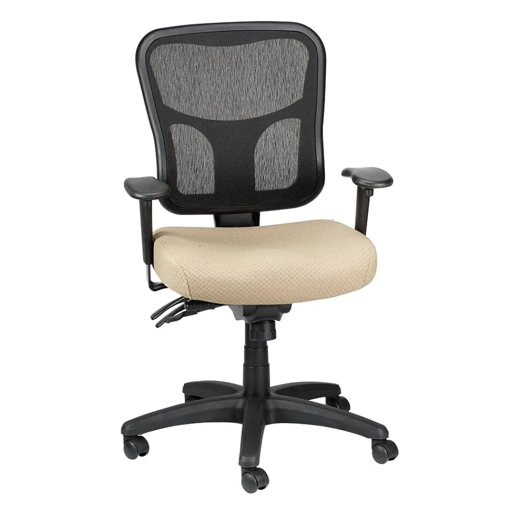 - Polyester fabric upholstery with mesh back for durability and extended comfort