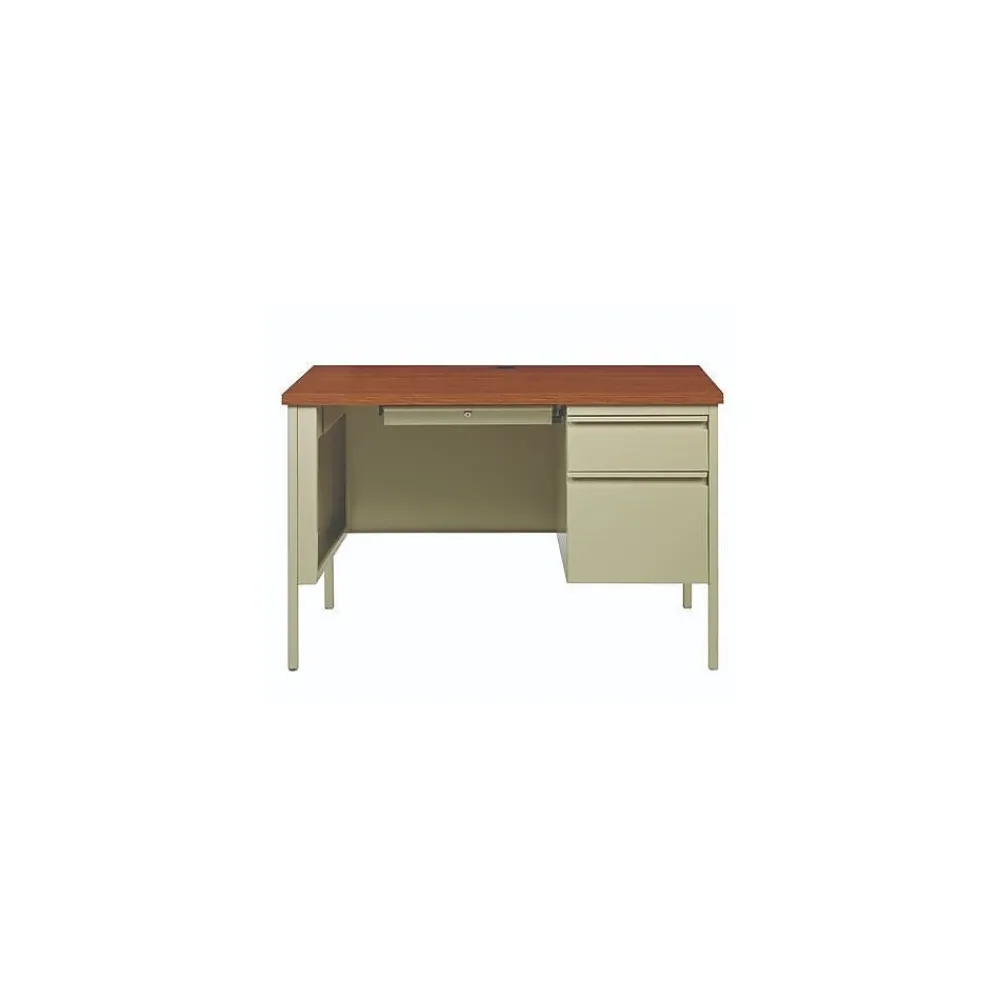 Built with a durable, powder-coated steel frame with 1″ square tubular steel legs. Standard features include full extension ball-bearing drawer slides for smooth drawer action, central locking center drawer, and a strong laminate wood top. Desks ship fully assembled except for the legs. All necessary hardware to attach the legs is included. Designed to meet or exceed ANSI-BIFMA industry standards for performance and workmanship.