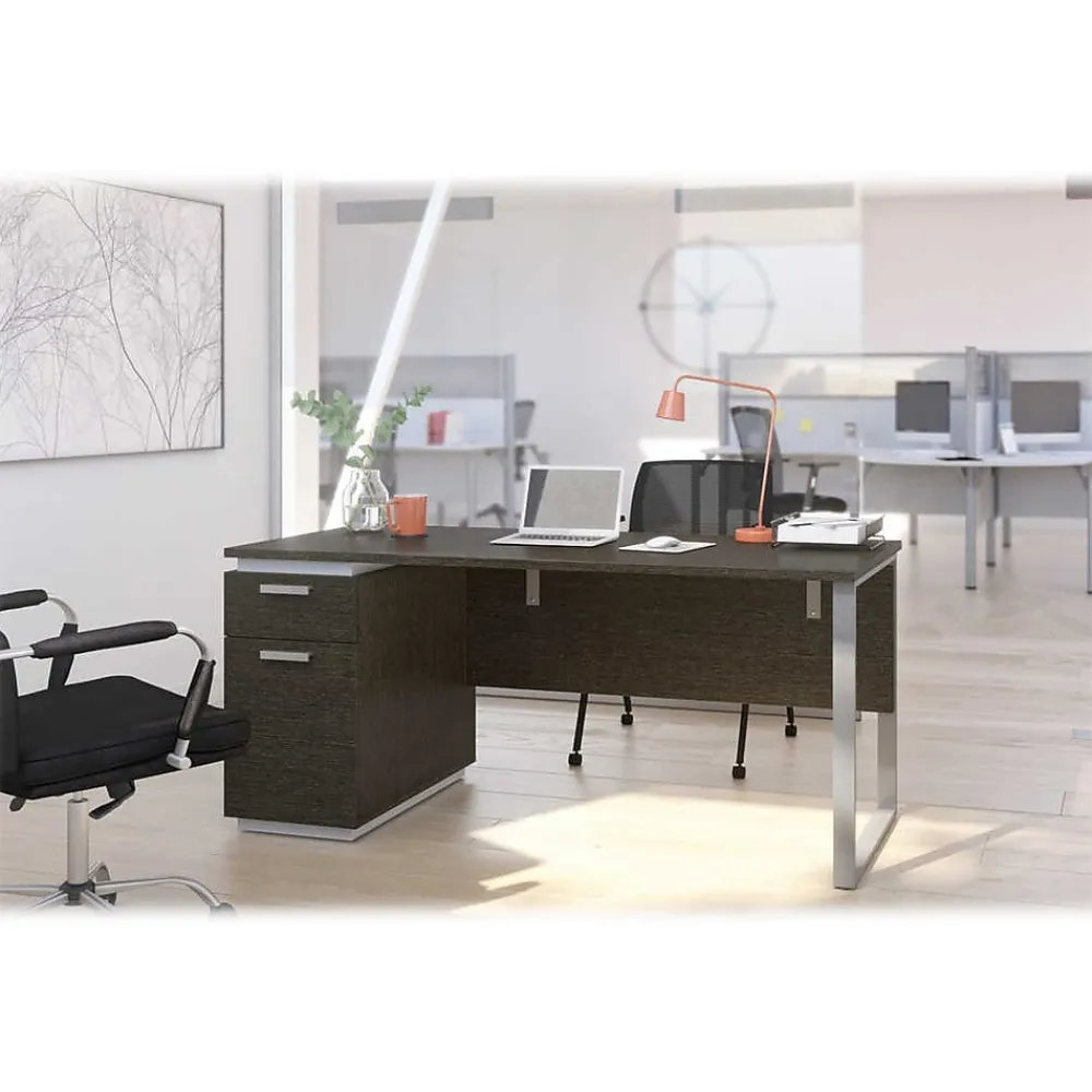 The bestar Aquarius collection provides solutions for organizing your office in style. With its clean lines and metal accents, this contemporary pedestal desk will help you get that wow effect to impress clients and employees alike. In addition, the desk’s highly functional design will contribute to a more productive and better organized office environment.