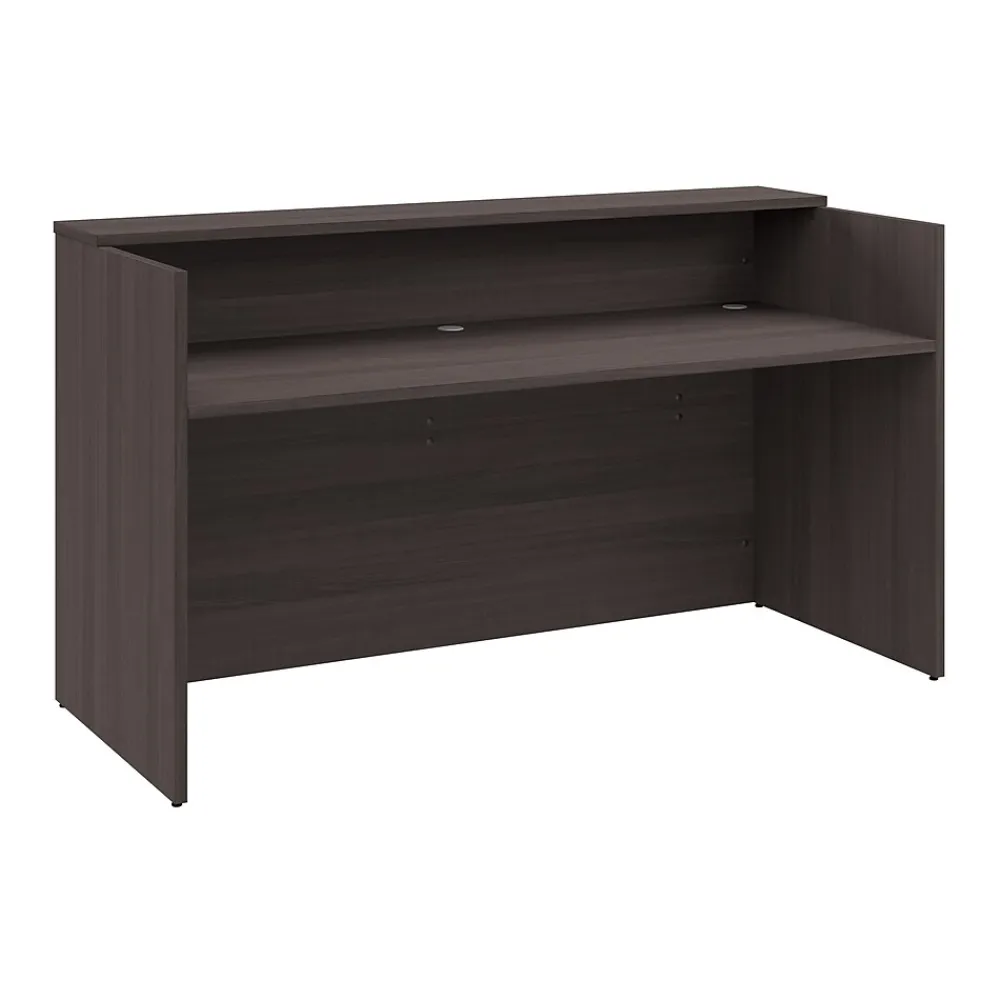The Bush Business Furniture Arrive 72W x 30D Reception Desk with Shelf provides a stylish and practical solution for welcoming guests to your office’s waiting room. Greet clients, patients, and other visitors at a front desk that includes a raised shelf for signing in and completing paperwork. The durable thermally fused laminate surface protects against scratches, stains, and other cosmetic damage to preserve the modern reception desk’s appearance throughout years of regular use. The desktop supports multiple monitors and other equipment with a 200-pound weight capacity and built-in wire management grommets. This commercial-grade receptionist desk has been meticulously tested to meet or exceed ANSI/BIFMA quality standards for safety, durability, and performance and is backed by the Bush Business Furniture 10 Year Manufacturer’s Warranty. American made with U.S. and imported parts.