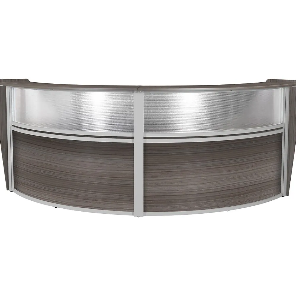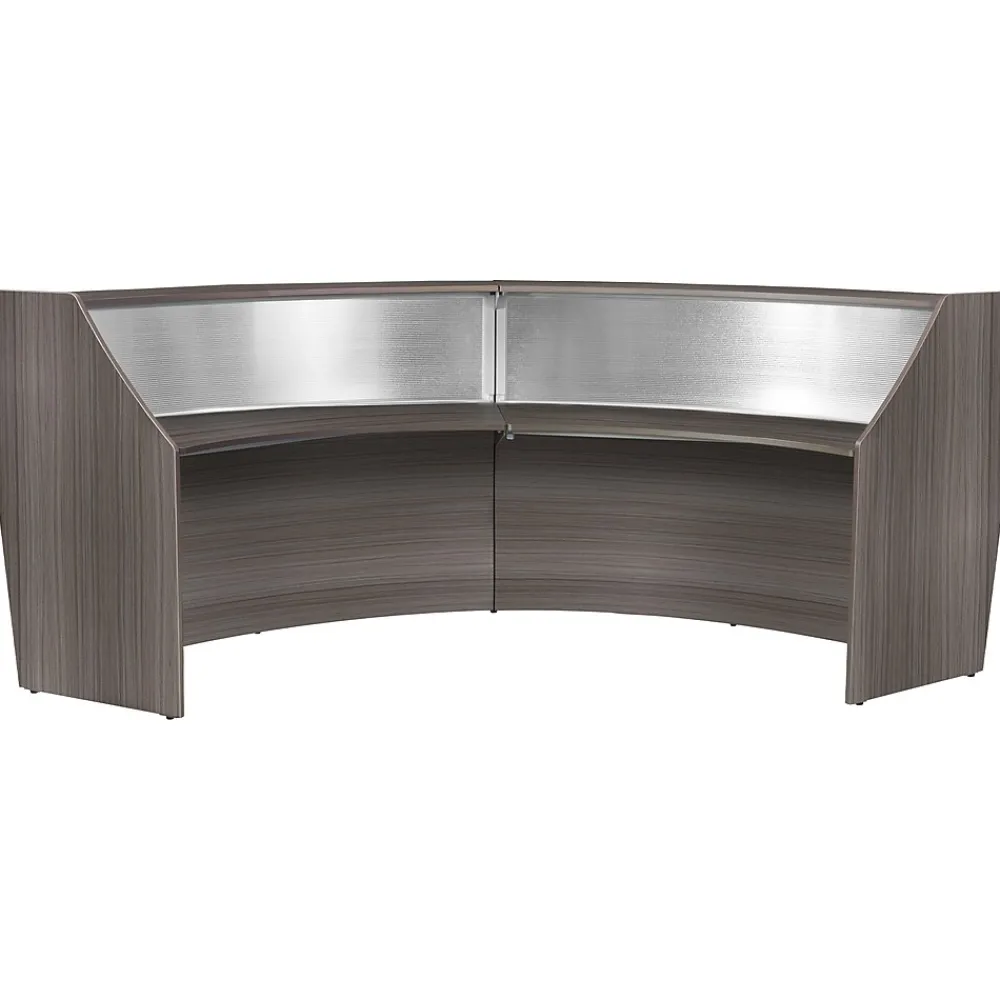 - Greet visitors properly with this curved double-unit reception desk workstation