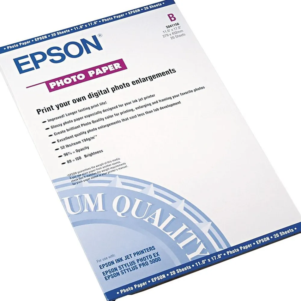 Guaranteed to work with all inkjet printers, Epson® Glossy Photo Paper is suitable for creating true photographic images with vivid, high-quality color.