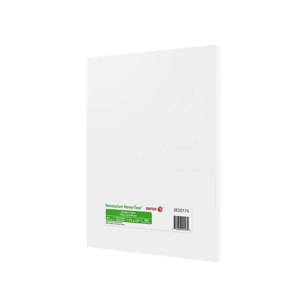 Produce consistently professional printed pages with this sturdy 32-pound paper. Designed for two-sided color or black and white printing, this matte white paper makes consistently crisp clean pages and features a polyester film to make it resistant to tears and water. This Xerox premium never-tear, ledger-size laser paper is ideal for tough, heavy-use applications and comes with 100 sheets in a pack.