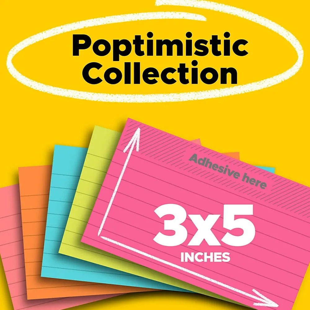 America’s #1 favorite sticky note, the 3 in x 5 in size is great for short lists, indexing, or to call out important information. Leave notes in calendars or planners. The Poptimistic collection gives your messages pop and optimism with bright colors that grab attention.