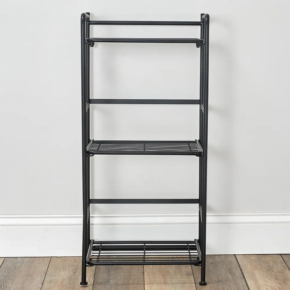 - Holds up to 75 lbs per shelf, rounded frame