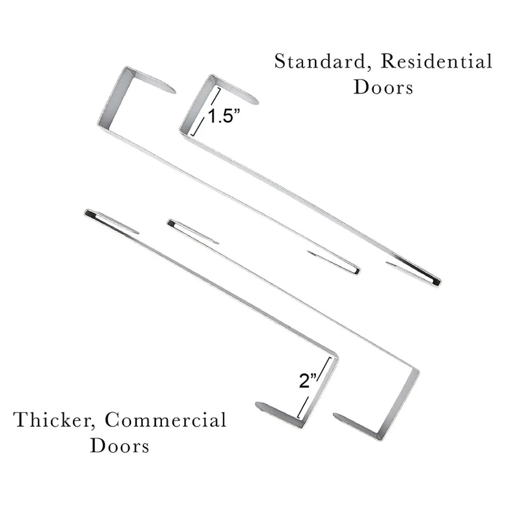 - Includes two residential hooks for home use on doors with standard thickness, and two commercial hooks for use on thicker doors in office buildings, schools, and college dorm rooms