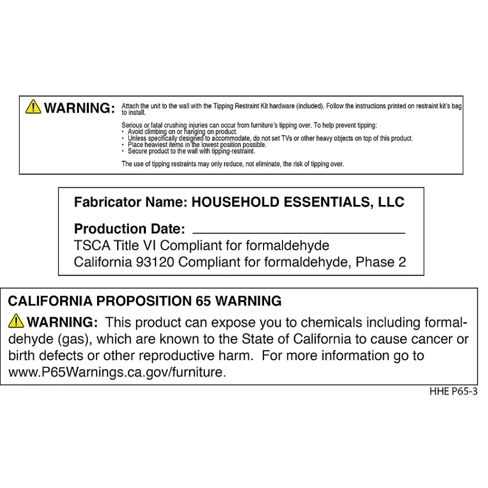 - ⚠ WARNING: This product can expose you to chemicals including formaldehyde (gas), which are known to the State of California to cause cancer or birth defects or other reproductive harm. For more information go to www.P65Warnings.ca.gov/furniture.