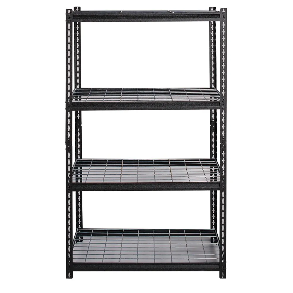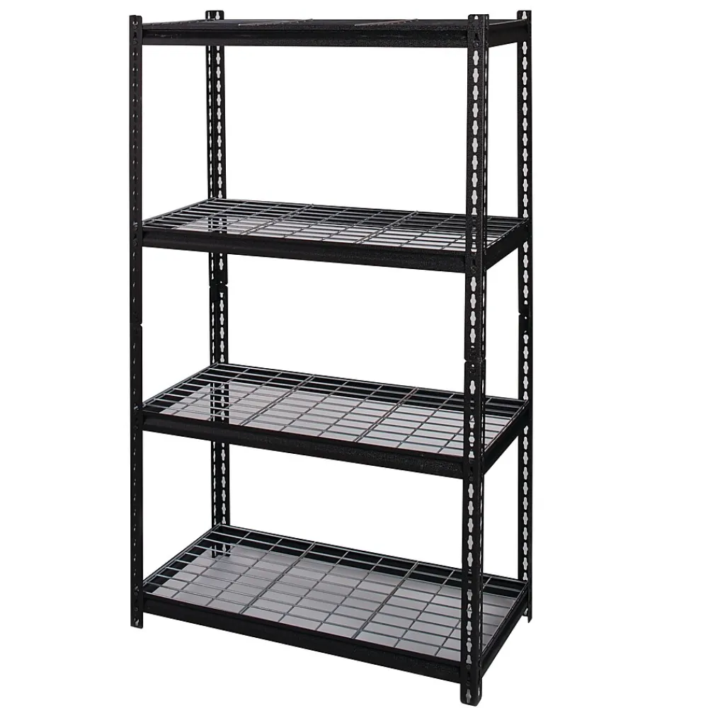 Wire Deck Shelving units are a great solution to your home storage needs. When you are looking for solutions for your garage, storage room or kitchen, this wire shelving unit can hold a total capacity of 2,300 lbs. of evenly distributed weight. The zinc coated wire shelving makes each shelf easy to clean and disinfect. Shelving unit can be assembled either vertically or horizontally to suit your needs. The simple, bolt-less design makes it easy to assemble with only a rubber mallet (not included). Black crinkle coat posts are durable and rust resistant.
