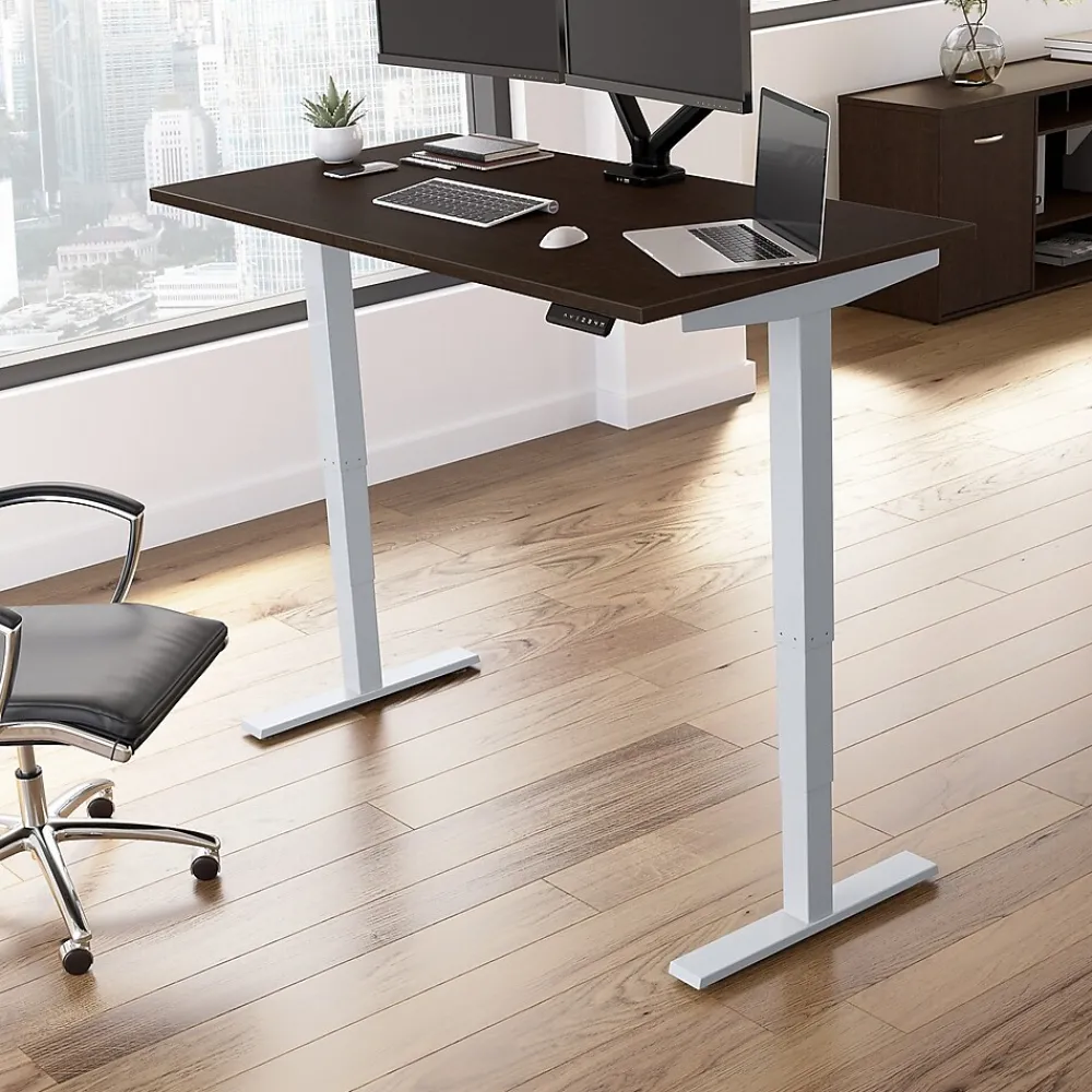 Bush Business Furniture’s Move 40 Series Electric Height Adjustable Standing Desk is a perfect way to build an ergonomic workspace without the high-end price tag. The 60W x 30D desktop lifts anywhere from 28 to 48 inches from the floor at a speed of 1.25 inches per second. The control panel includes four programmable presets that save your favorite heights so you can change positions without missing a beat. The Adjustable Desk also features an Anti-Collision Sensor that stops movement up or down if an object is detected. Built to endure the rigors of a busy professional environment, the thermally fused laminate work surface resists scratches and stains while a welded 16-gauge steel base allows the desktop to support up to 176 pounds. This Ergonomic Office Desk has been tested to meet or exceed ANSI/BIFMA standards for safety, durability and performance and is backed by a 5 Year Warranty.