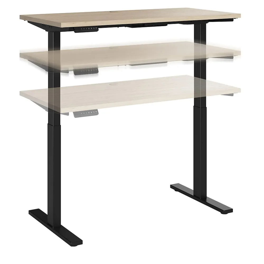 Have a healthy and productive day at the office with the Move 60 Series by Bush Business Furniture 48W x 24D Electric Height Adjustable Standing Desk. Those who use sit-stand desks report improved energy, comfort, and productivity, and the Move 60 Series provides an affordable solution. Sit and stand throughout your day without missing a beat in your home office or at work. The electric adjustable desk includes a 10 foot power cord and smoothly lifts from a low of 27 inches to a high of 46.7 at the push of a button. Store your favorite heights with four programmable presets so you can use them as often as you like. The ergonomic desk’s thermally fused laminate finish resists scratches and stains, while the sturdy steel base creates a weight capacity of up to 200 pounds. Backed by a 5 Year Warranty, the electric desk meets ANSI/BIFMA quality test standards for safety and performance.