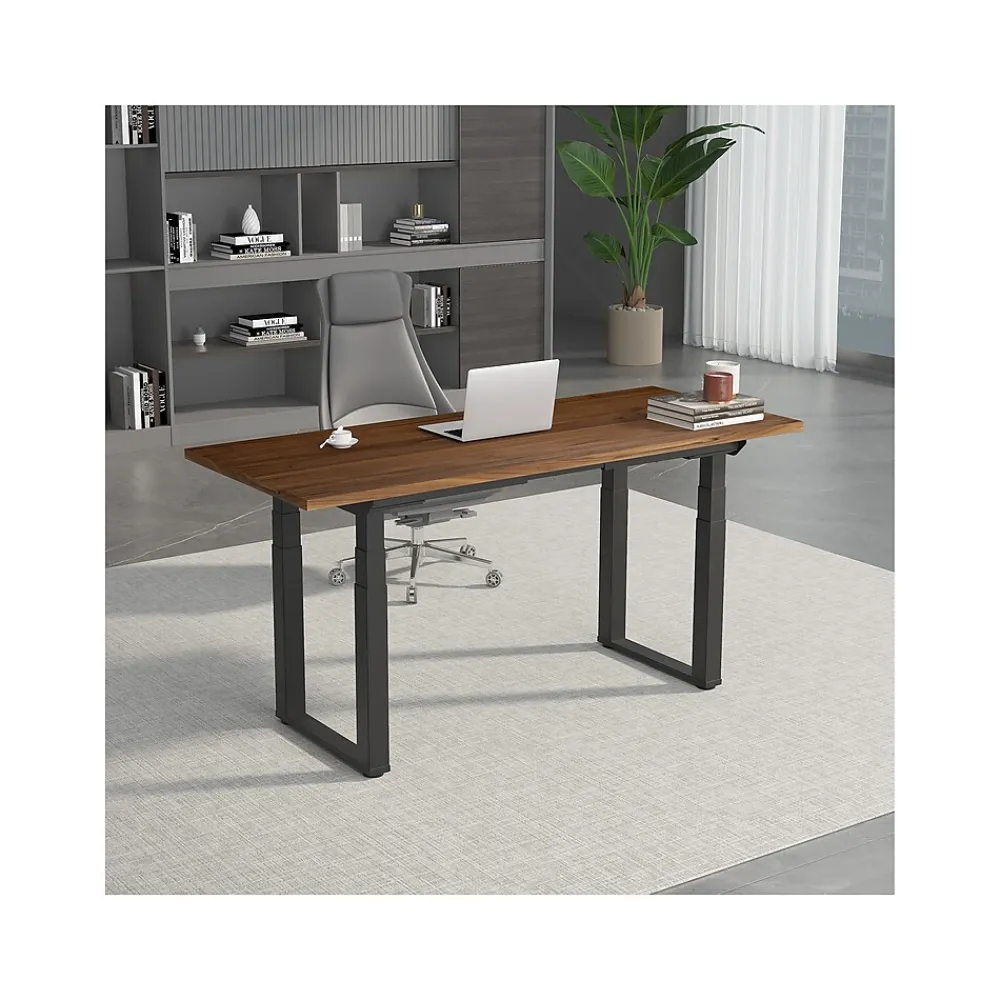- Height-adjustable standing desk with extra-large desktop gives you more space to breathe and work