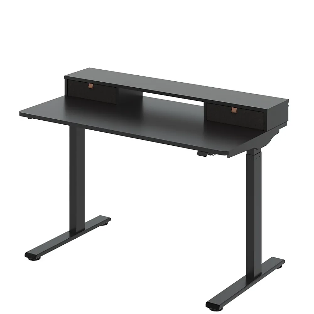 New to the series, the EC9BDO04B includes a shelf with 2 fabric storage drawers. The shelf system is not fixed to the table top, but has no-slip rubber feet which makes setup easy. The desk in this bundle is the EC9B which is a favorite for work from home or remote worker programs. It arrives partially assembled from the factory so it just requires a few steps to complete.