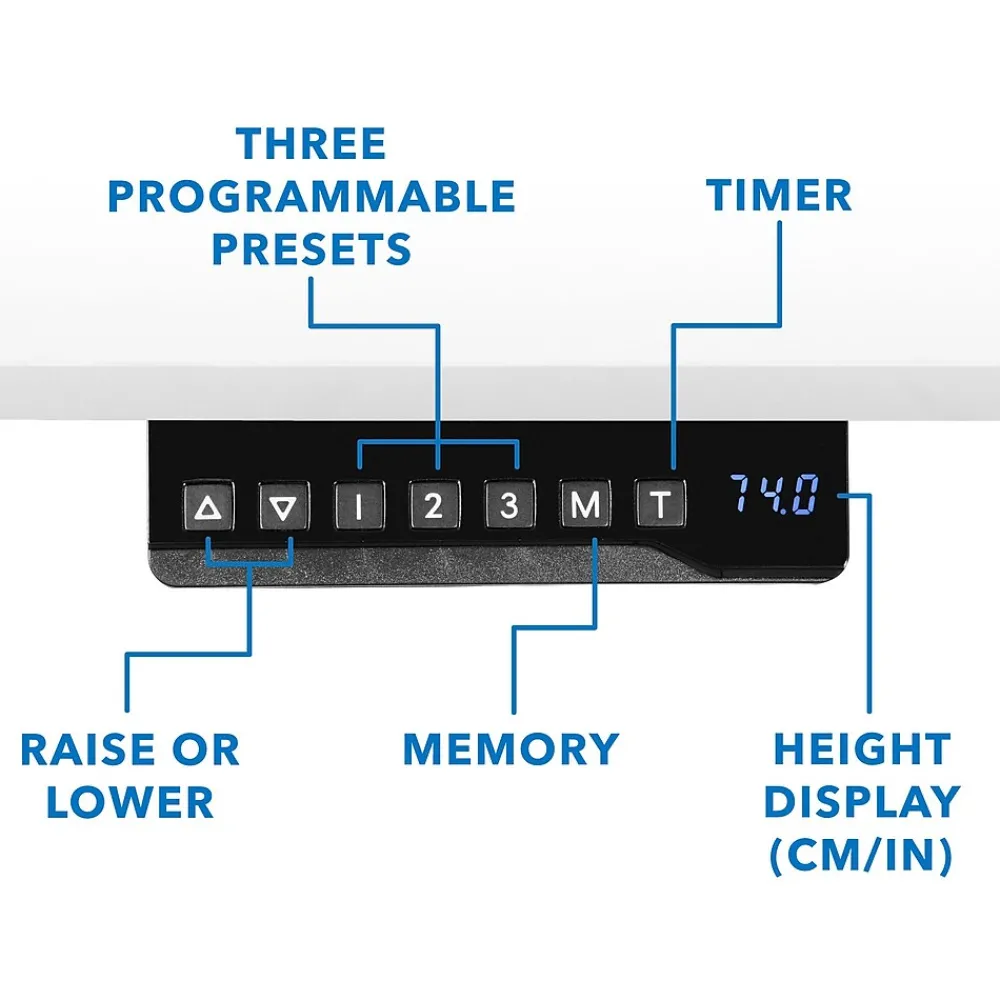 People who spend their days sitting at a computer desk can fatigue easily and are at a higher risk of eyestrain, back/neck pain, and conditions such as carpal tunnel syndrome. With the Mount-It! easy-to-use adjustable sit-stand desk, you can combat these problems with a simple push of a button. The sit-stand desk with an electric motor elevates your workstation anywhere between 29.7″ and 49.4″, allowing you to get out of your chair without interrupting your workflow or productivity. The clean and simple style will look contemporary wherever you use it. The tabletop is easily cleanable with a damp cloth.