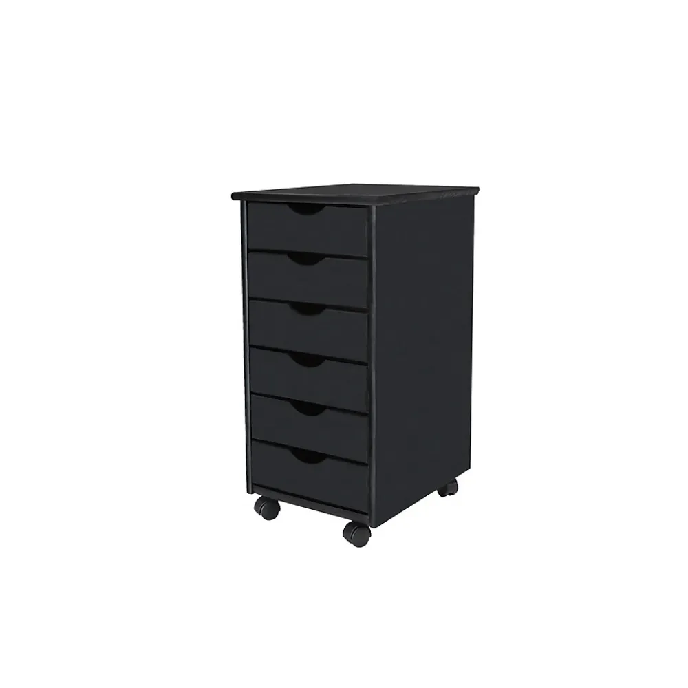 This six-drawer roll cart on wheels features deep drawers to hold reams of paper or drills. Perfect for project rooms, kitchens, garages, offices, or end tables.